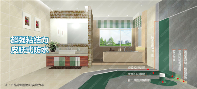 7. 若需在防水涂層上粘貼瓷磚,建議使用瓷磚膠或低標(biāo)號(hào)水泥砂漿粘貼。